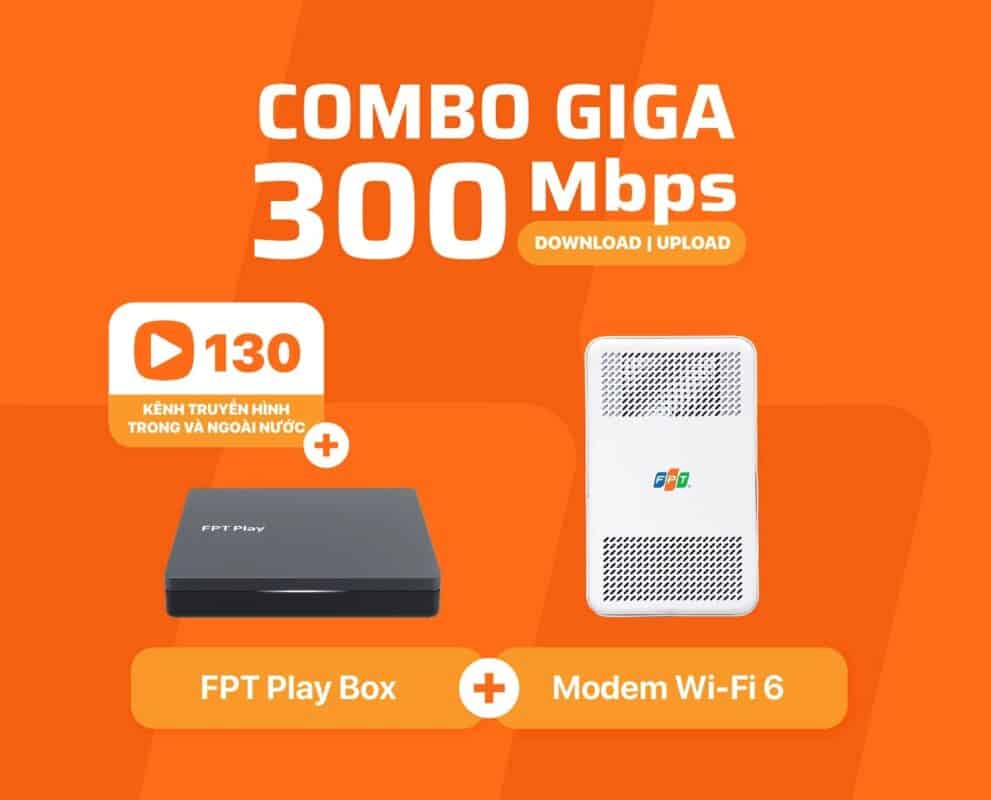 Khách hàng đăng ký gói COMBO 2 trong 1 gồm Internet WiFi 6 + Truyền hình FPT Play sẽ được FPT trang bị miễn phí 01 Modem WiFi 6 hiện đại và 01 Box FPT Play thông minh hỗ trợ điều khiển bằng giọng nói, tích hợp hơn 130 kênh truyền hình đặc sắc.