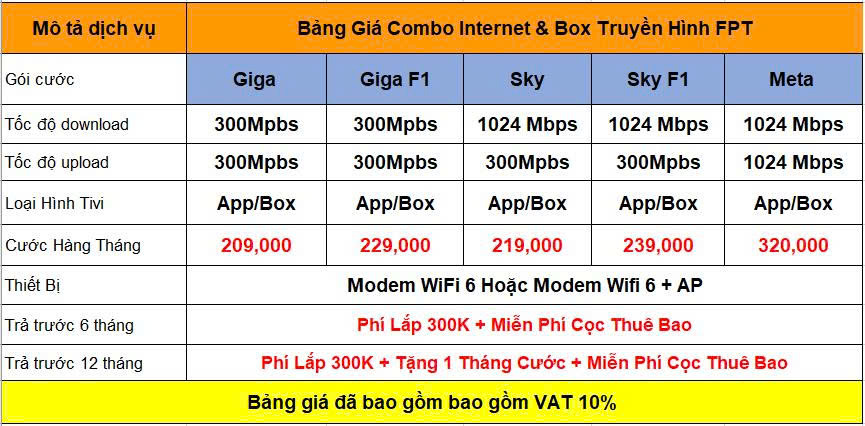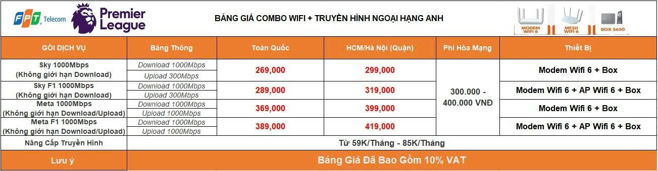 Bảng Giá Combo Internet + Truyền Hình Ngoại Hạng Anh FPT Play