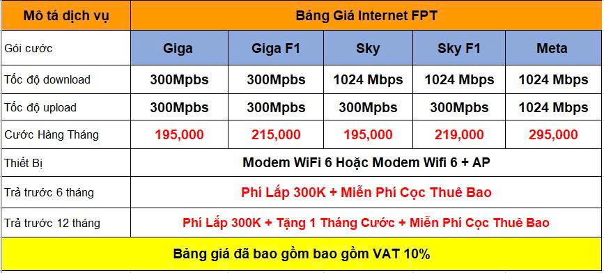 Internet FPT hiện tại là 1 trong 3 nhà mạng mạnh nhất Việt Nam hiện nay. Với các gói cước cáp quang tốc độ cao của FPT  từ 300mbs tới tận 1000mbs sẽ đáp ứng tất cả các nhu cầu thiết yếu từ khách hàng. Với nền tảng công nghệ hàng đầu Việt Nam như FPT Sotfware, đội ngũ được đào tạo bài bản, chuyên nghiệp, có nghiệp vụ tốt từ đại học FPT nên luôn đem được trải nghiệm tốt nhất, mới nhất, hiện đại nhất, thoải mái nhất cho khách hàng.